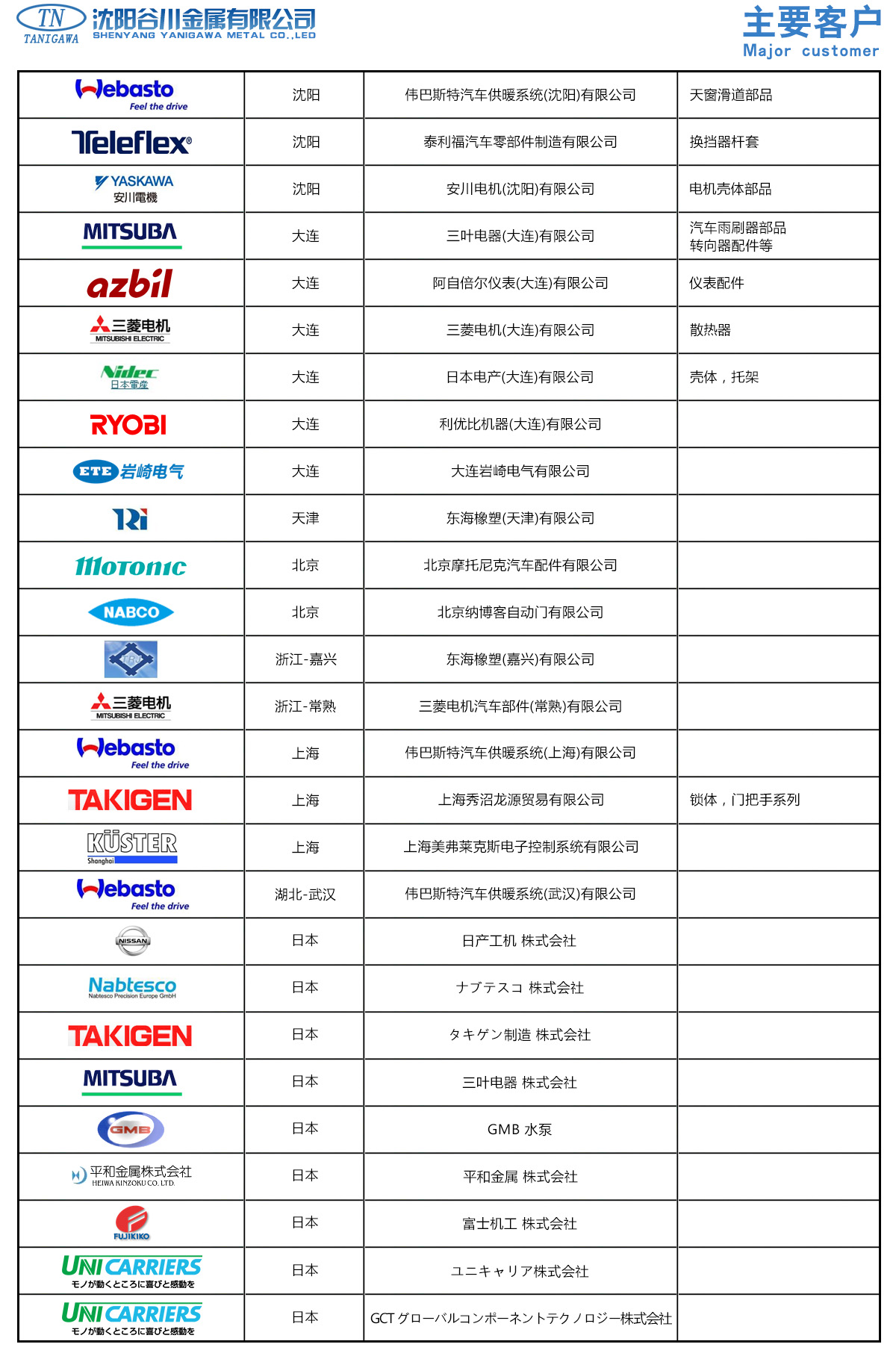 谷川金屬有限公司成立于2001年,是在沈陽經濟技術開發區注冊的日本獨資企業。